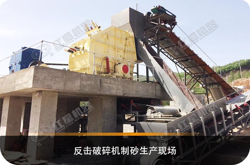 反擊破碎機(jī)生產(chǎn)石灰石機(jī)制砂現(xiàn)場(chǎng)